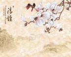 B362玉兰玉兰花鸟电视背景墙装饰水墨画为客厅